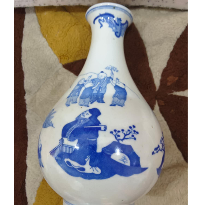 清康熙青花人物瓶是清代制瓷工艺巅峰时期的代表,其青花发色浓艳明快,绘画笔触细腻流畅,人物题材多源自历史典故或民间传说,构图饱满生动,尽显时代艺术风貌;作为官窑或精品民窑作品,既见证了康熙朝制瓷技术的高超水准,又因历经数百年流传存世量有限,尤其是品相完好、纹饰罕见者更显珍贵,兼具明清瓷器史的研究价值、精湛工艺的审美价值与时代文化的承载意义,成为收藏市场中兼具历史厚重感、艺术典范性与稀缺性的珍品。