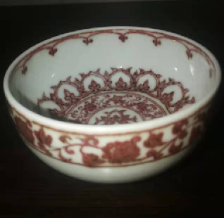 大明宣德釉里红碗堪称中国瓷器史上的旷世奇珍,其收藏价值源于三重极致魅力:一是工艺难度冠绝古今,釉里红烧造需精准控制窑温至1350℃的临界点,宣德朝成功将这门"火中取宝"的技艺推向巅峰,呈现出发色纯正、层次分明的宝石红;二是皇家审美典范,碗身常绘缠枝牡丹或三鱼纹,红釉在甜白釉地上如凝血般深邃,暗含"洪福齐天"吉祥寓意;三是存世极度稀缺,全球公认真品不足百件,多数珍藏于故宫、大英博物馆等顶级机构,近三十年拍卖市场仅见3件流通,2022年香港苏富比一件宣德釉里红三鱼纹高足杯以4,100万港元成交,印证了其"一件难求"的王者地位。